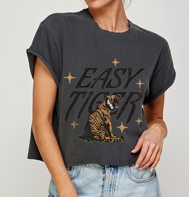 • CROPPED TIGER TEE IN BUTTER GOLD